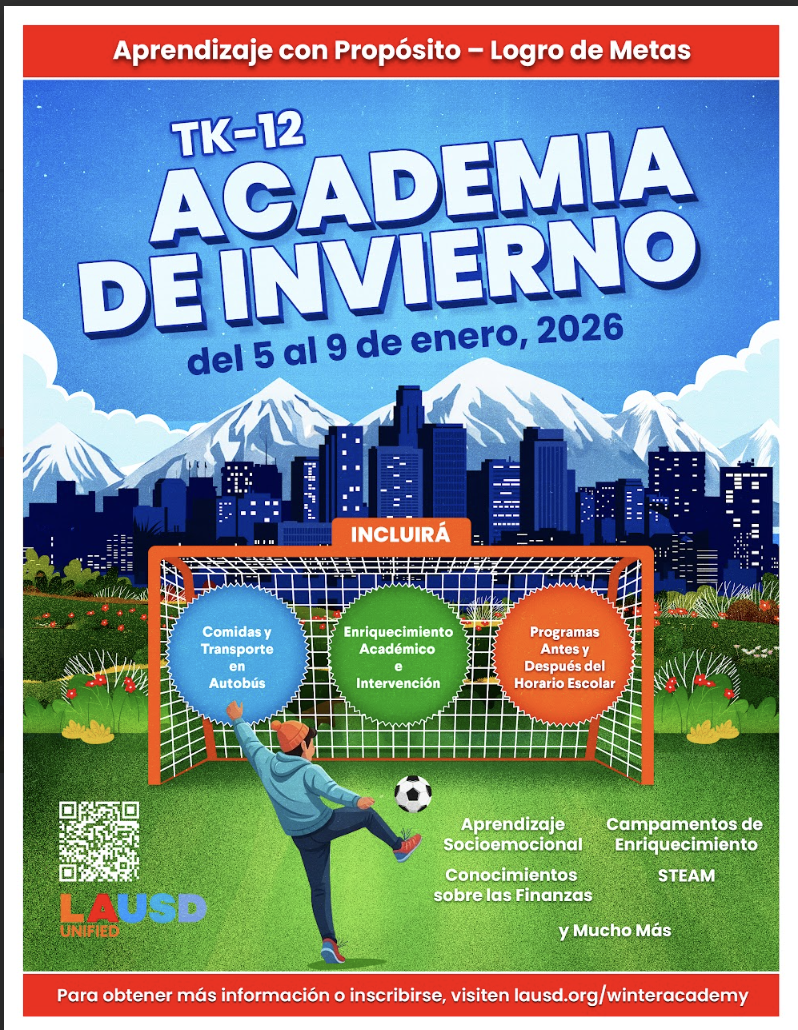 Familias de El Dorado: ¡Nos complace anunciar que la Academia de Invierno se llevará a cabo del 5 al 9 de enero de 2026 en El Dorado! 📚✨